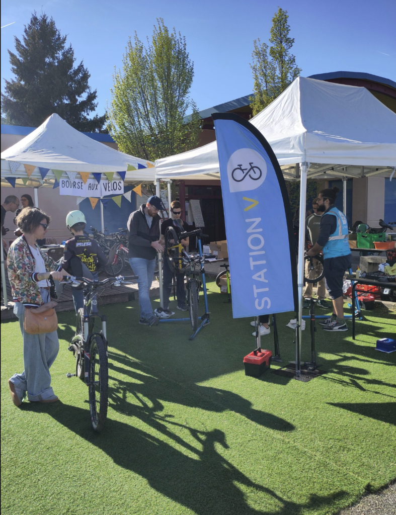 ➡️ Le samedi, lors de la Récup Party organisée par le collectif Fair Sens et la MJC du Pays de l’Herbasse, nous avons échangé sur les mobilités décarbonées, le réemploi, la réparation et les énergies renouvelables.