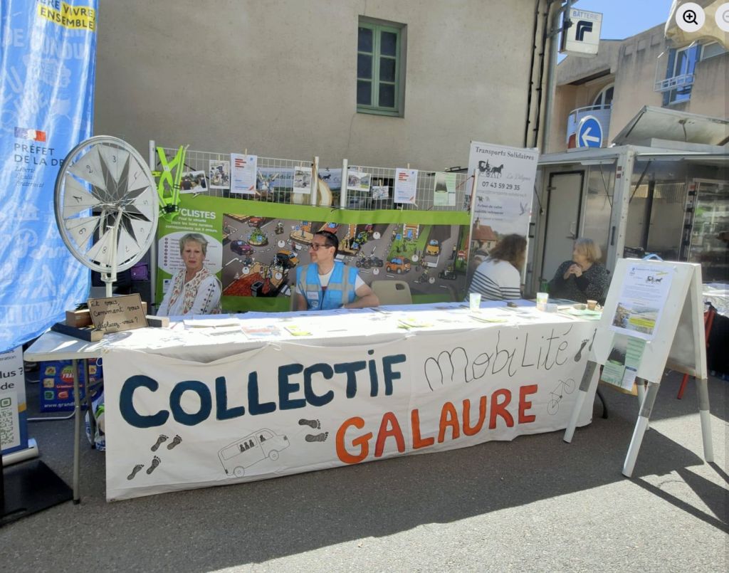 ➡️ Le lundi, à la foire d’Hauterives, notre stand aux côtés du collectif Mobilité de la Galaure a permis de sensibiliser le public aux alternatives à la voiture individuelle.
